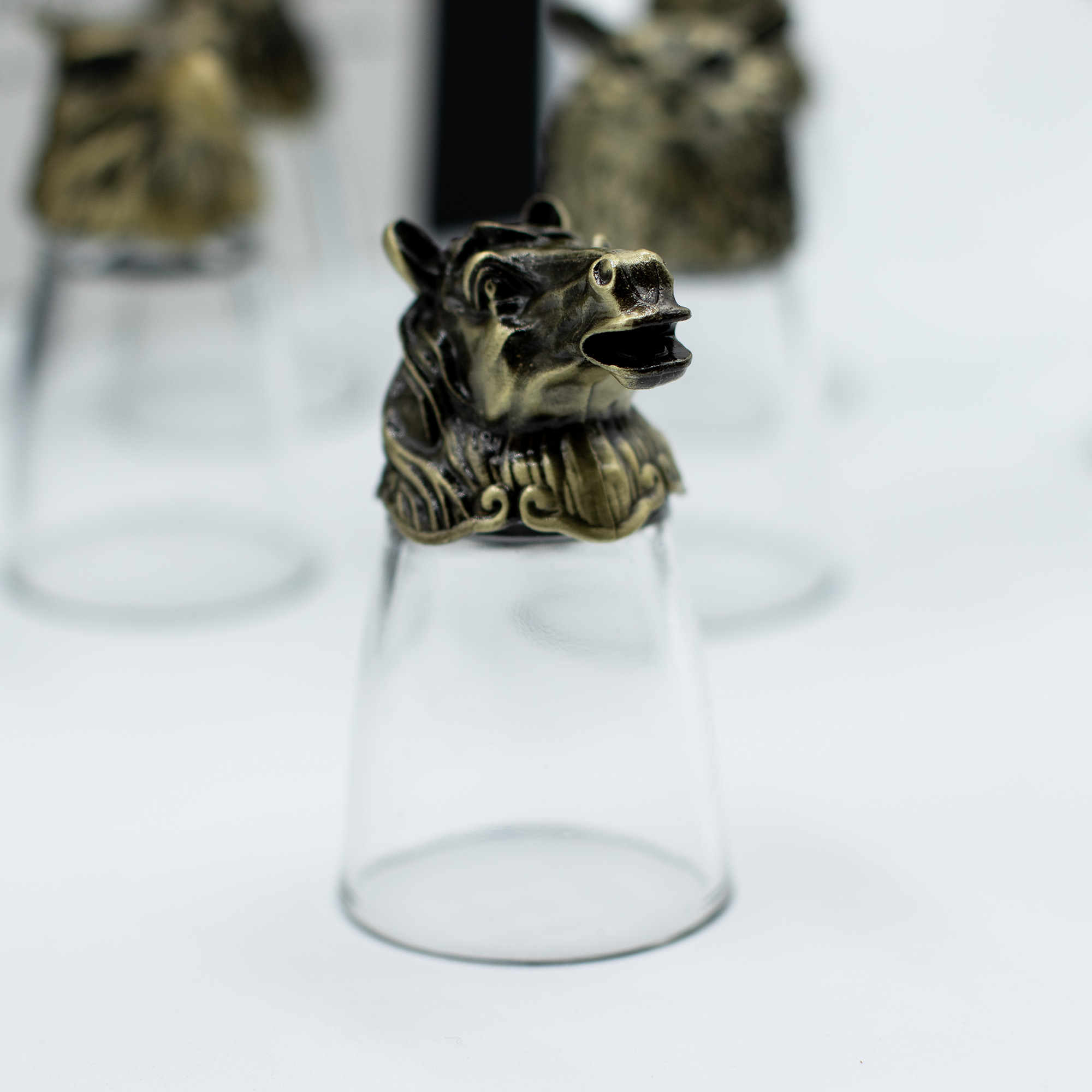 Vneste do police s nápoji fantazii s touto okouzlující 12dílnou sadou sklenic na panáky s motivem lesa a mystických tvorů, které se otáčí zdola nahoru. Každá sklenice o objemu 25 ml je ručně vyrobena z čirého skla s masivní mosaznou základnou, vymodelovanou do detailních zvířecích nebo mytických vzorů.