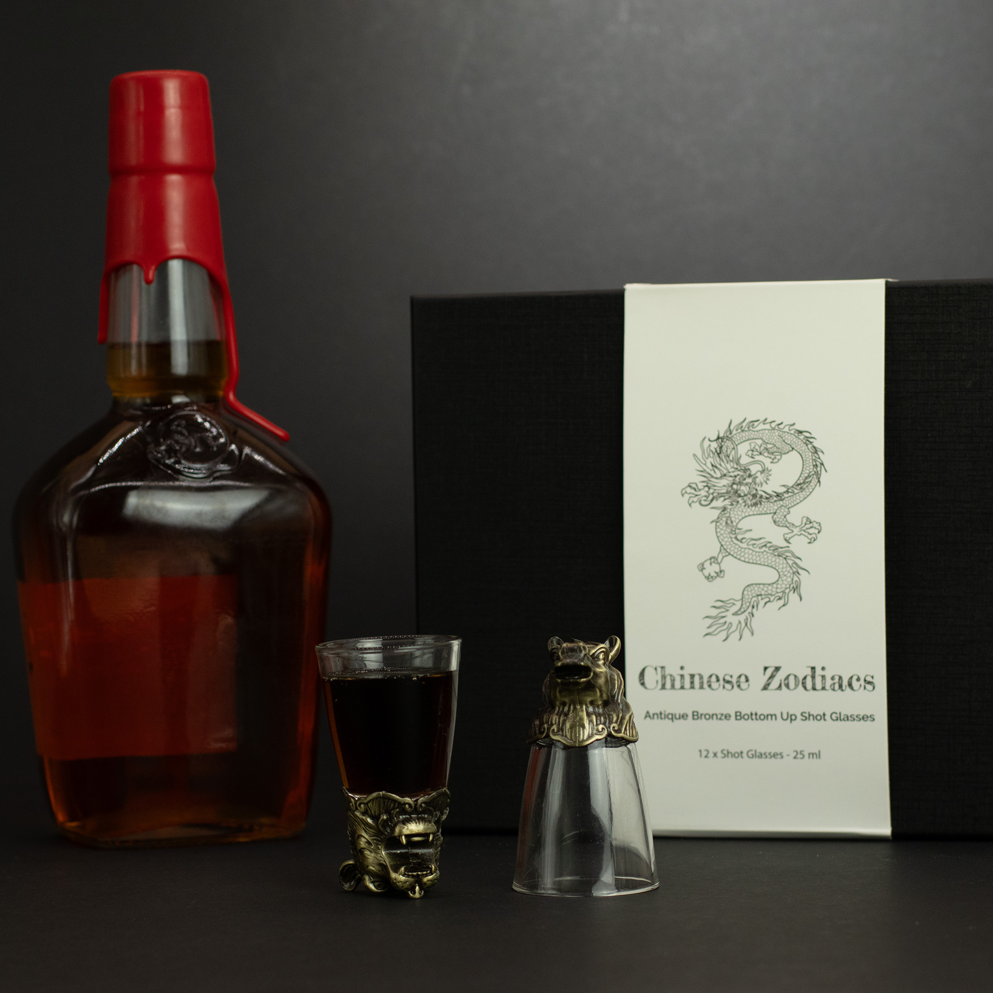 Každý 25ml panáček má mosaznou základnu ve tvaru jednoho z dvanácti zvířat zvěrokruhu – od draka po králíka, tygra a koně – a to vše je zakončeno jemnými sochařskými detaily, které krásně vyniknou, když se sklenice otočí dnem vzhůru. Tyto sklenice spojují umění, kulturu a funkčnost, což z nich činí atraktivní kousek pro obchody se suvenýry, koncepční obchody a maloobchodní kolekce inspirované Asií.