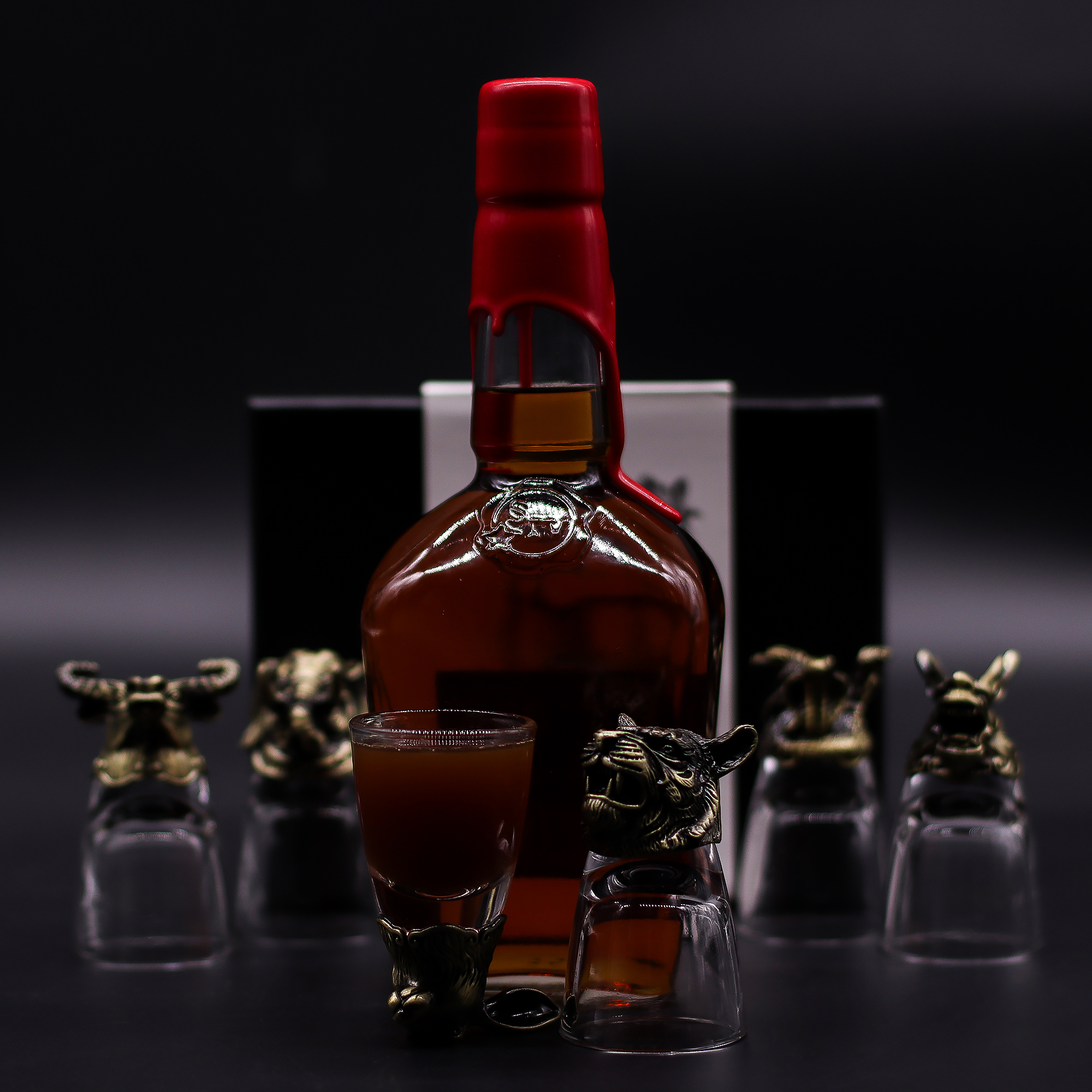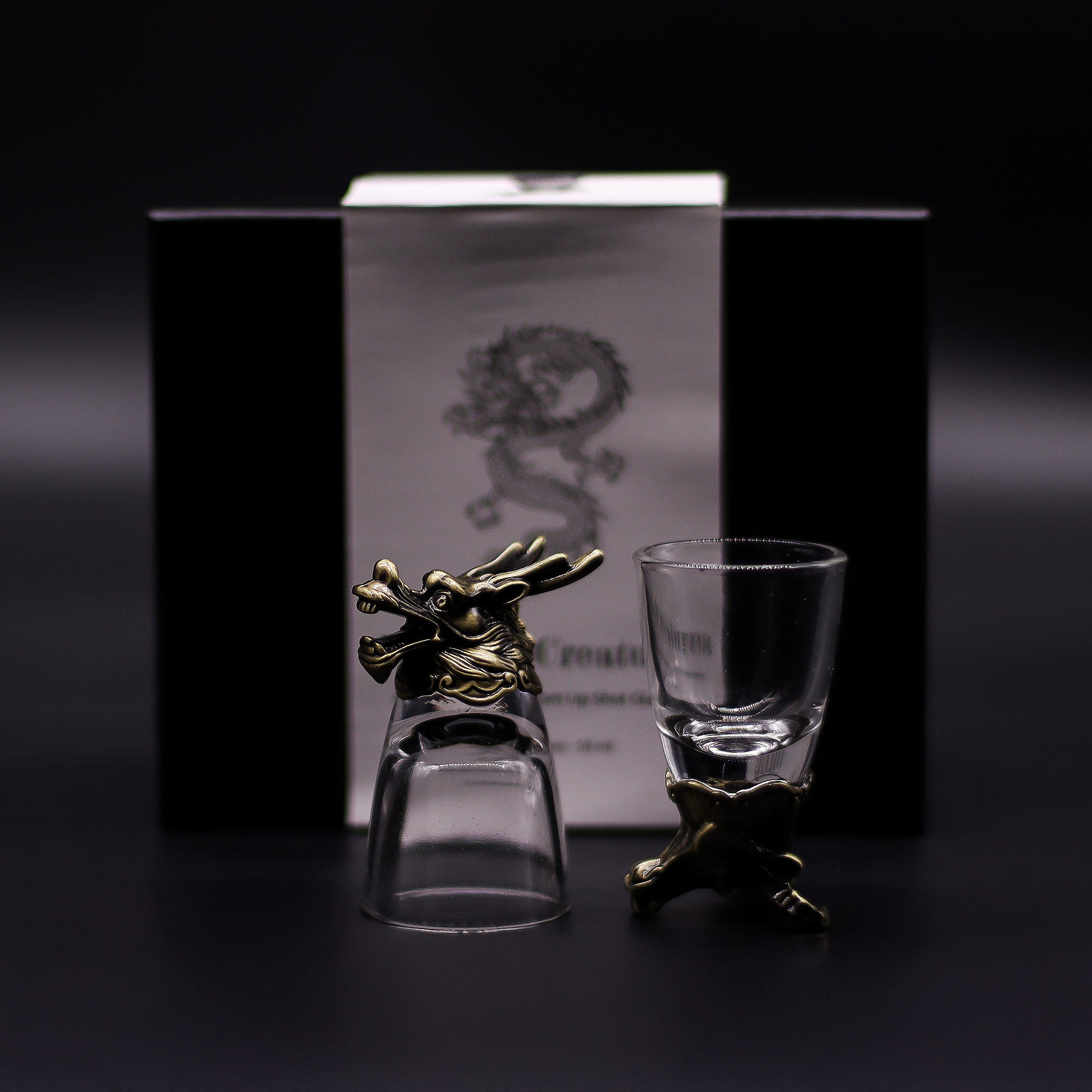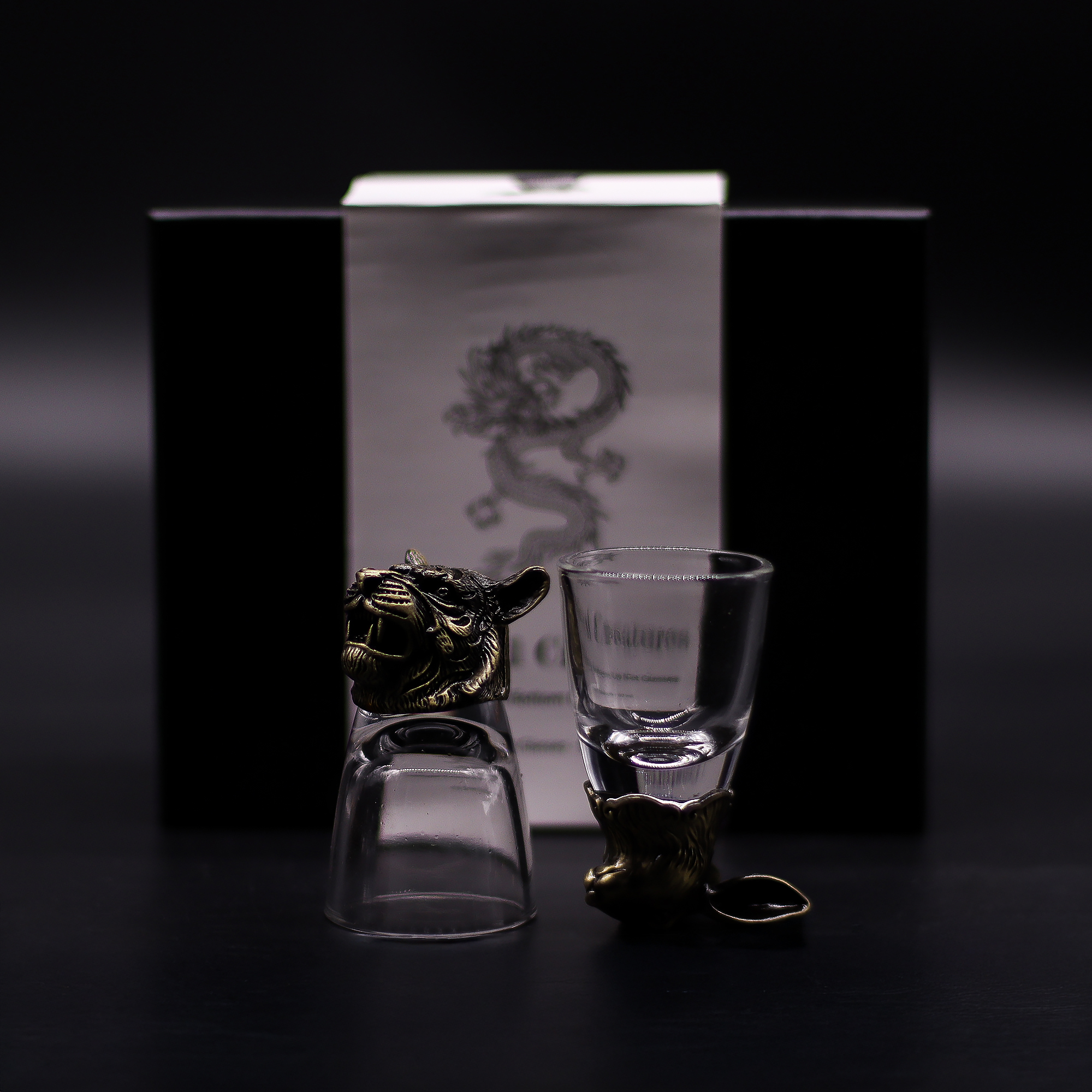 Kolekce Mystické bytosti přináší na stůl atmosféru úžasu. Tato sada 6 sklenic na panáky o objemu 50 ml se vyznačuje mimořádnými mosaznými podstavci ve tvaru mytických bytostí – včetně draka, tygra, kobry, slona, kozy a ovce – každá z nich je vymodelována s krásnou pozorností k detailu.