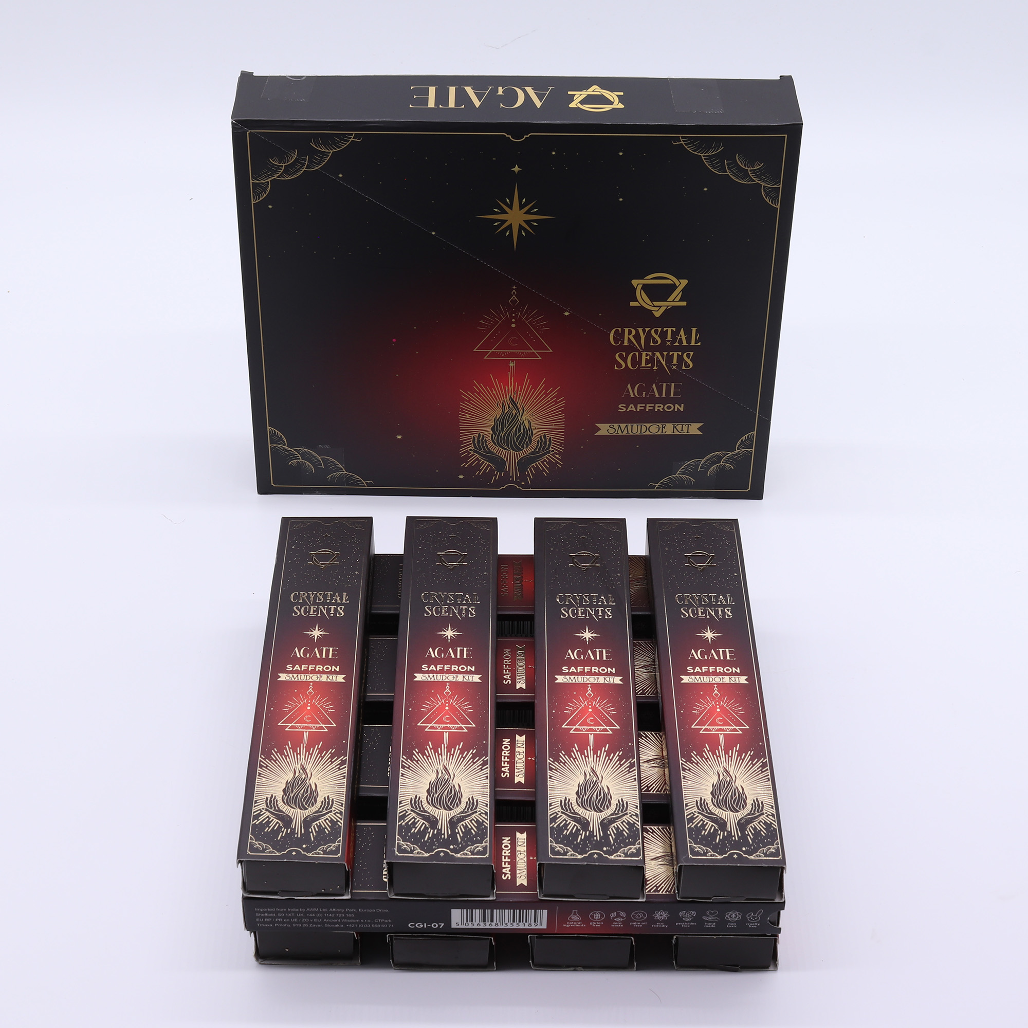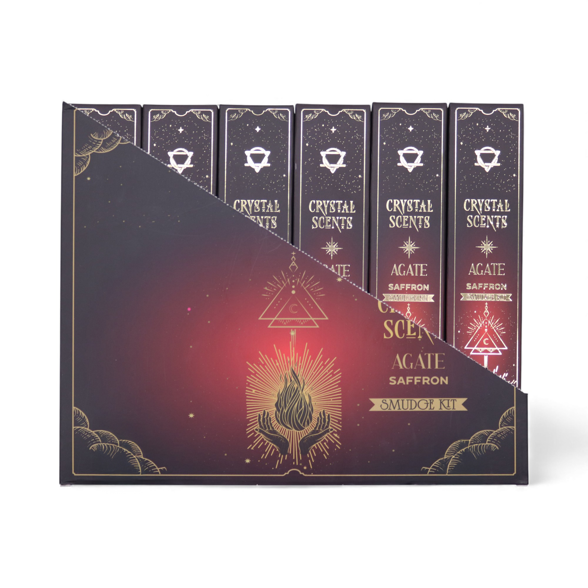Hluboké, zemité teplo šafránu tyto vlastnosti krásně doplňuje a vytváří stabilizující a uklidňující rituál. Každé balení obsahuje 10 ručně vyrobených tyčinek s pravými krystaly červeného achátu, což mu dává silný dárkový potenciál a širokou atraktivitu pro maloobchodní prodejce.
