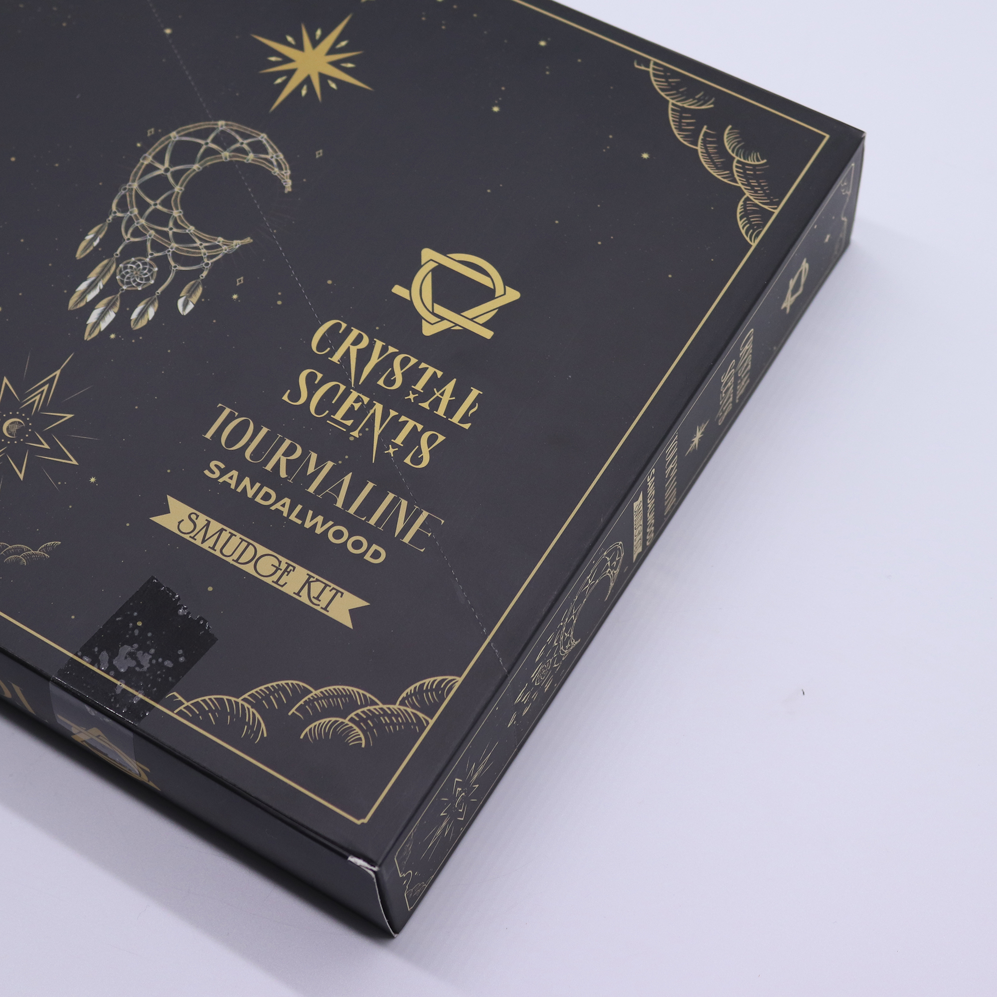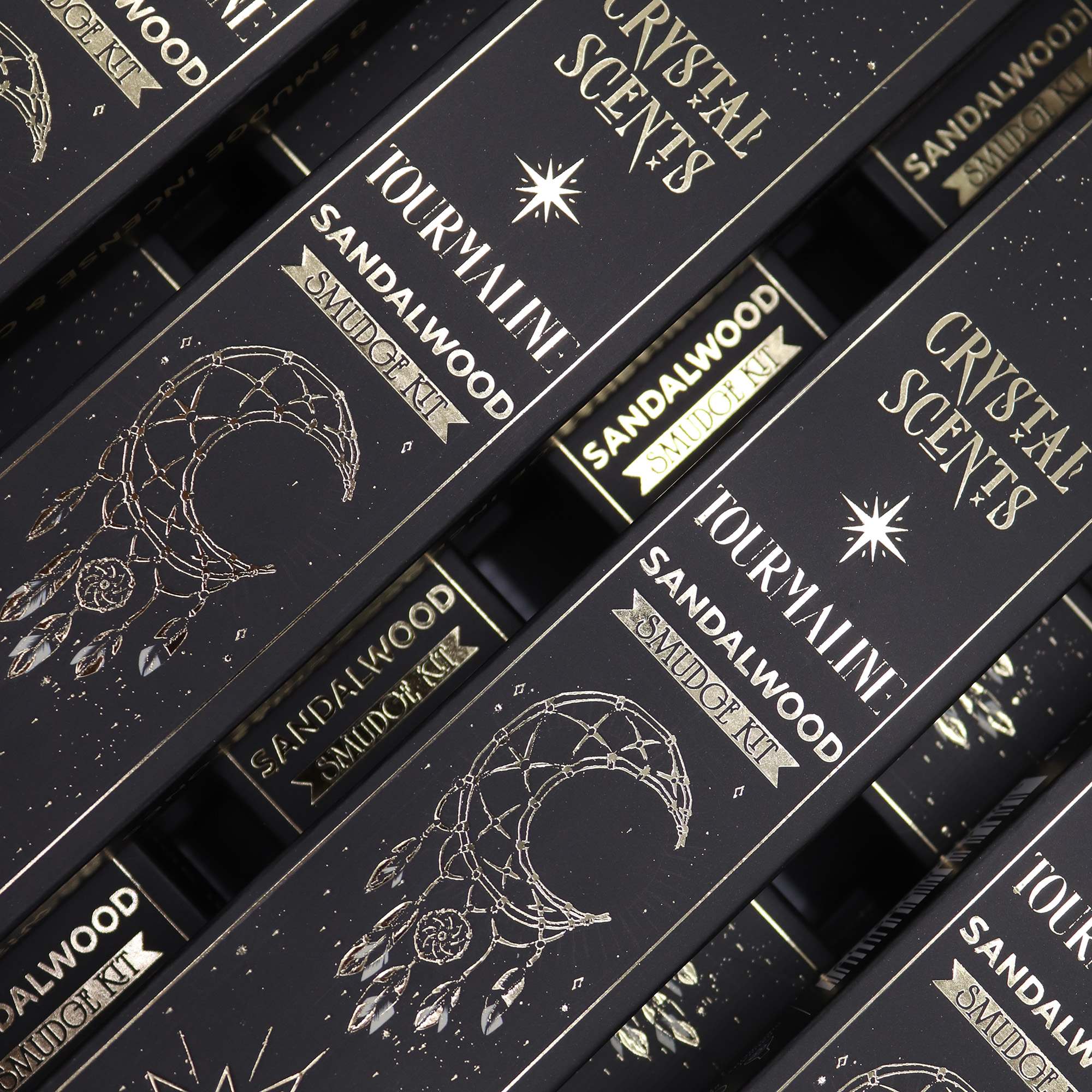 Tato vonná tyčinka mísí uzemňující santalové dřevo s krystaly turmalínu a vytváří tak rituál, který oslovuje zákazníky hledající ochranu, očistu a emocionální stabilitu.