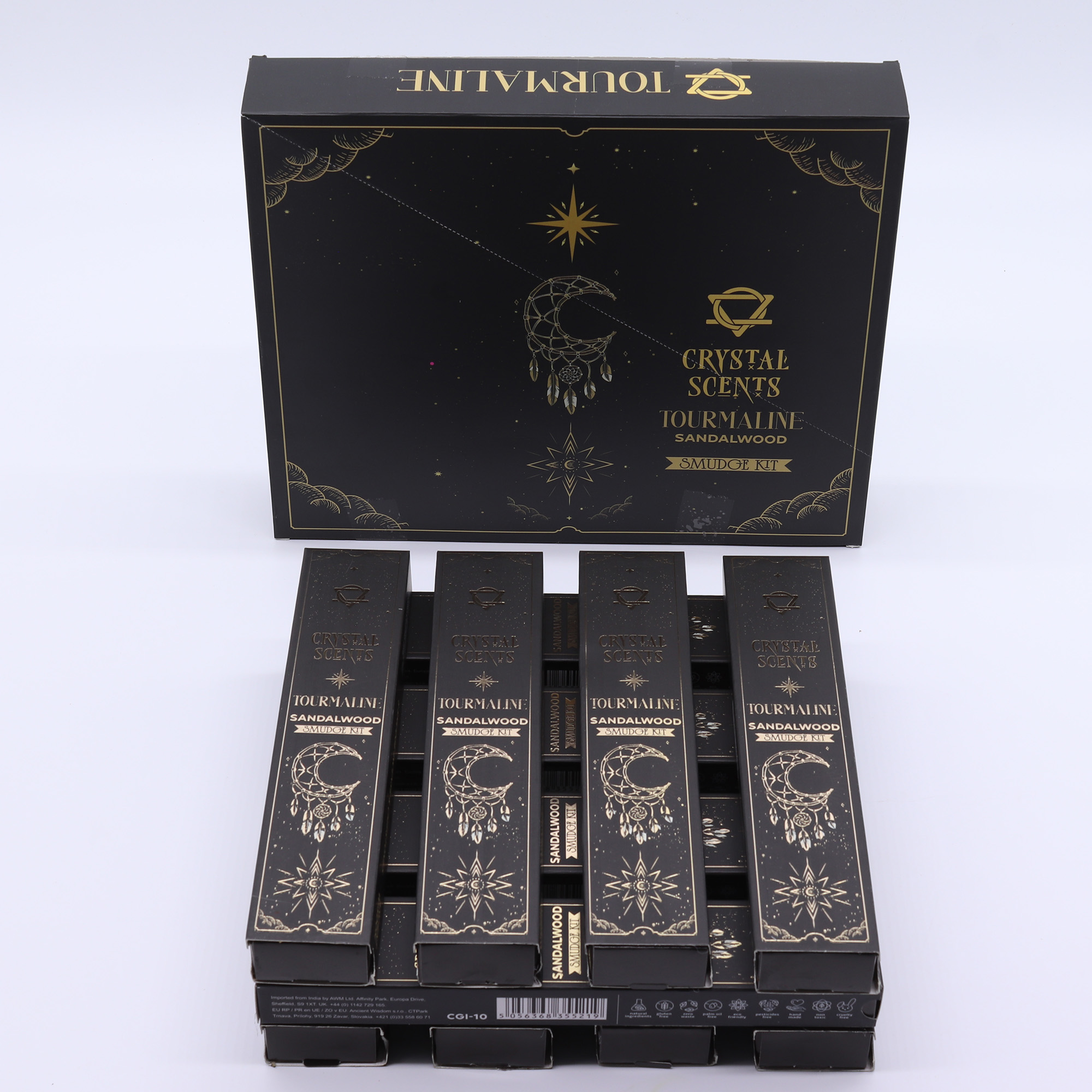 Turmalín je široce spojován s pohlcováním negativní energie, posilováním hranic a podporou emocionální odolnosti. V kombinaci s hlubokou, zemitou vůní santalového dřeva pomáhá tato směs vytvořit klidnou a chráněnou atmosféru ideální pro meditaci, uvolnění nebo pročištění mysli. Každé balení obsahuje 10 ručně vyrobených tyčinek s efektem rozmazání a pravé krystaly turmalínu, což z něj činí silnou volbu pro spirituální butiky, wellness prodejny a obchody nabízející uzemňovací nebo očistné rituální nástroje.