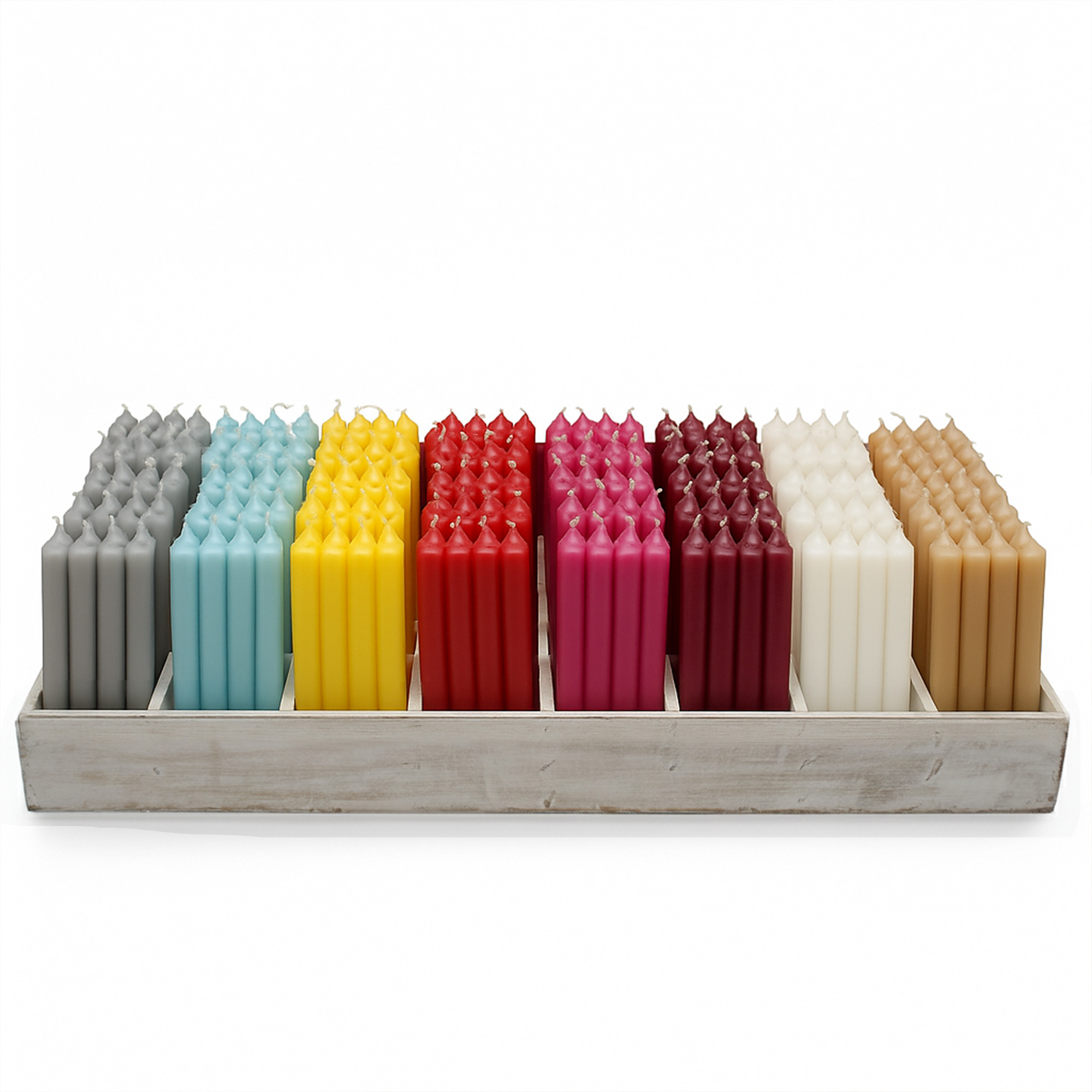 Rozjasněte svou výstavu produktů a zvyšte své zisky s tímto balíčkem stollních svíček se stojanem zdarma. Obsahuje 700 barevných svíček, dalších 100 svíček zdarma a krásný dřevěný tác. Jedná se o řešení připravené k prodeji, které dodá styl, hodnotu a pohodlí jakémukoli maloobchodnímu prostoru.
