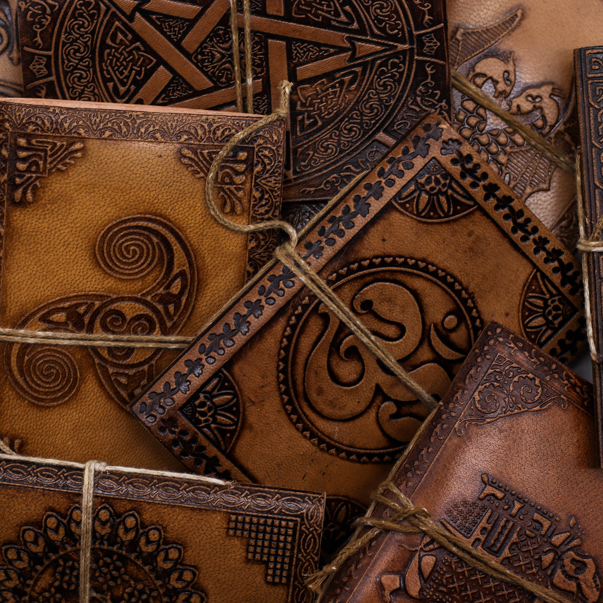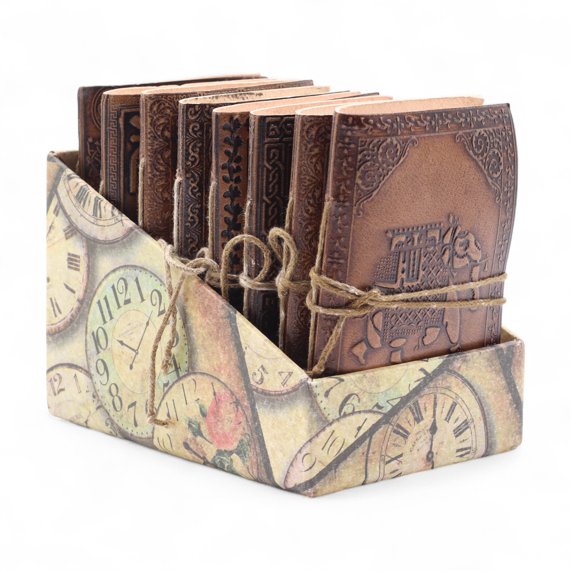 Tato všestranná sada na vystavení zboží spojuje osm krásně navržených ezoterických kožených zápisníků v kompaktním formátu 5x3,5".