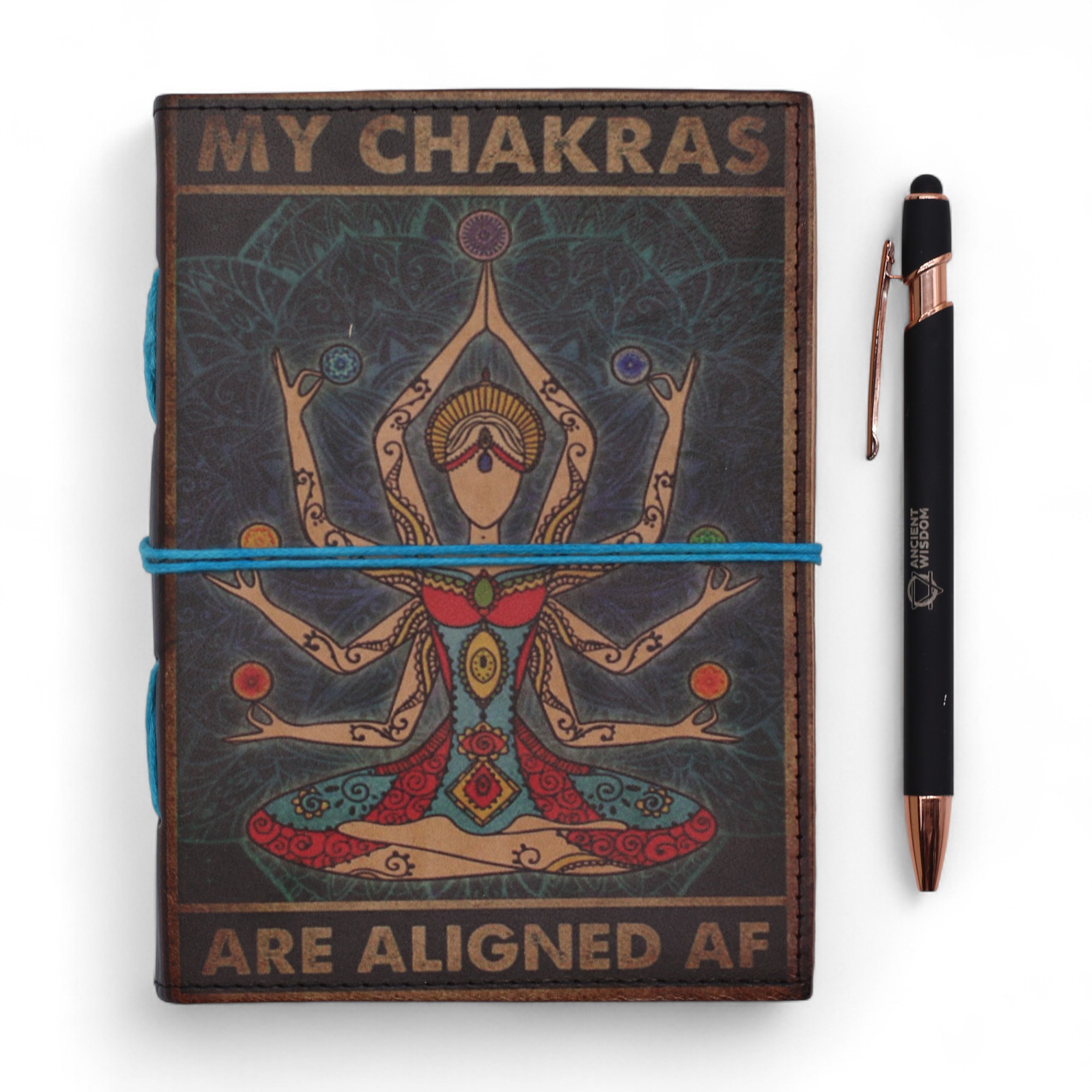 Hravý, odvážný a bez omluvy duchovní, tento potištěný kožený zápisník kombinuje humor s holistickými trendy životního stylu. Jeho živý design se vyznačuje kresbou inspirovanou čakrami a ironickou frází „Mé čakry jsou sladěny AF“ – okamžitým začátkem konverzace, která přitahuje mladší a vnímavé zákazníky.