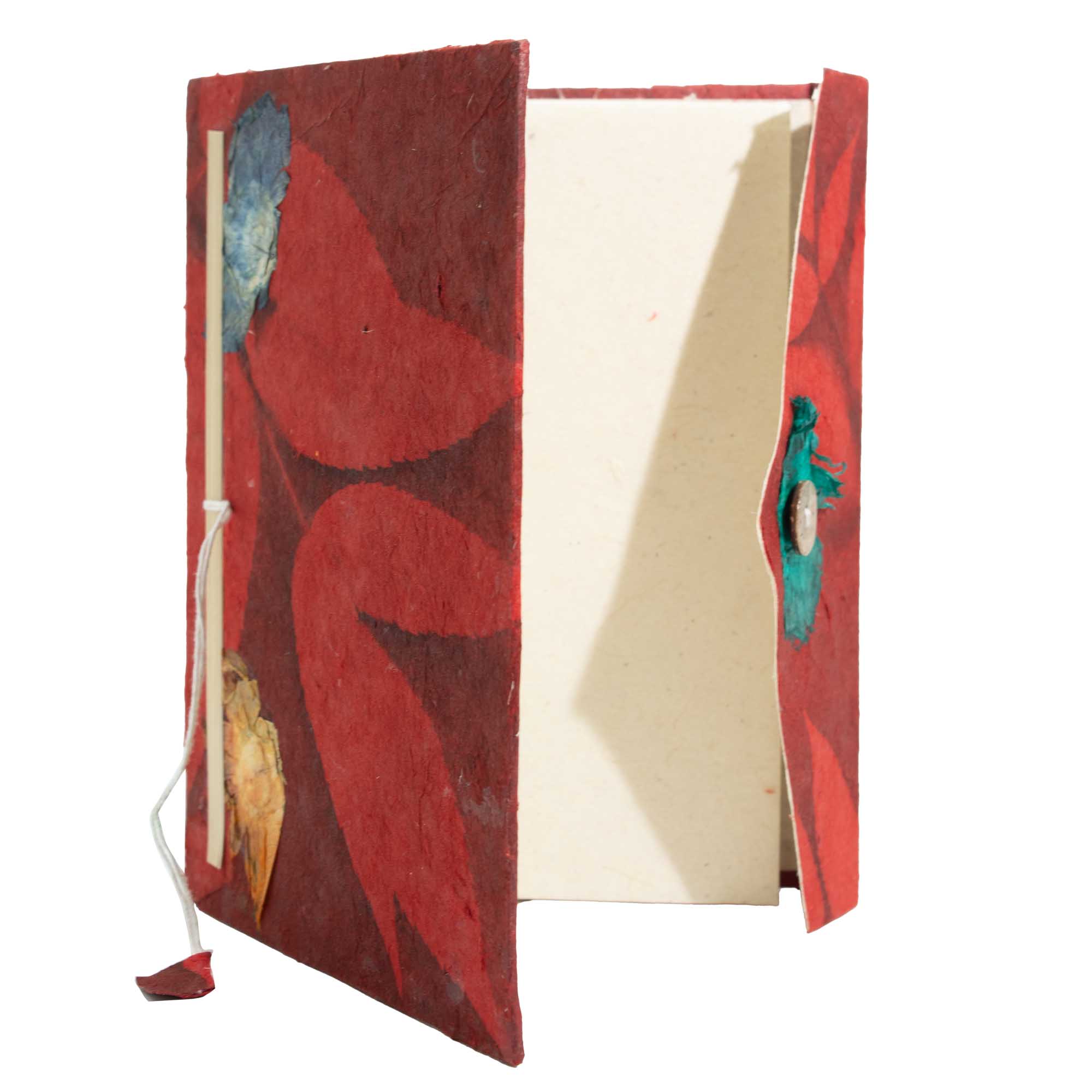 Tato výrazná rubínová edice zápisníku Lokta je navržena tak, aby vynikla. Tmavě červené tóny a výrazný květinový vzor mu dodávají teplejší a dramatičtější vzhled, díky čemuž je silným vizuálním prvkem pro LED displeje na dárky, nástěnné dekorace s kancelářskými potřebami nebo sekce s lifestylovými tématy. Každý zápisník, ručně vyrobený v Nepálu z tradičního papíru Lokta, má přirozenou texturu a jemné nerovnosti, které podtrhují jeho ručně vyrobený původ.