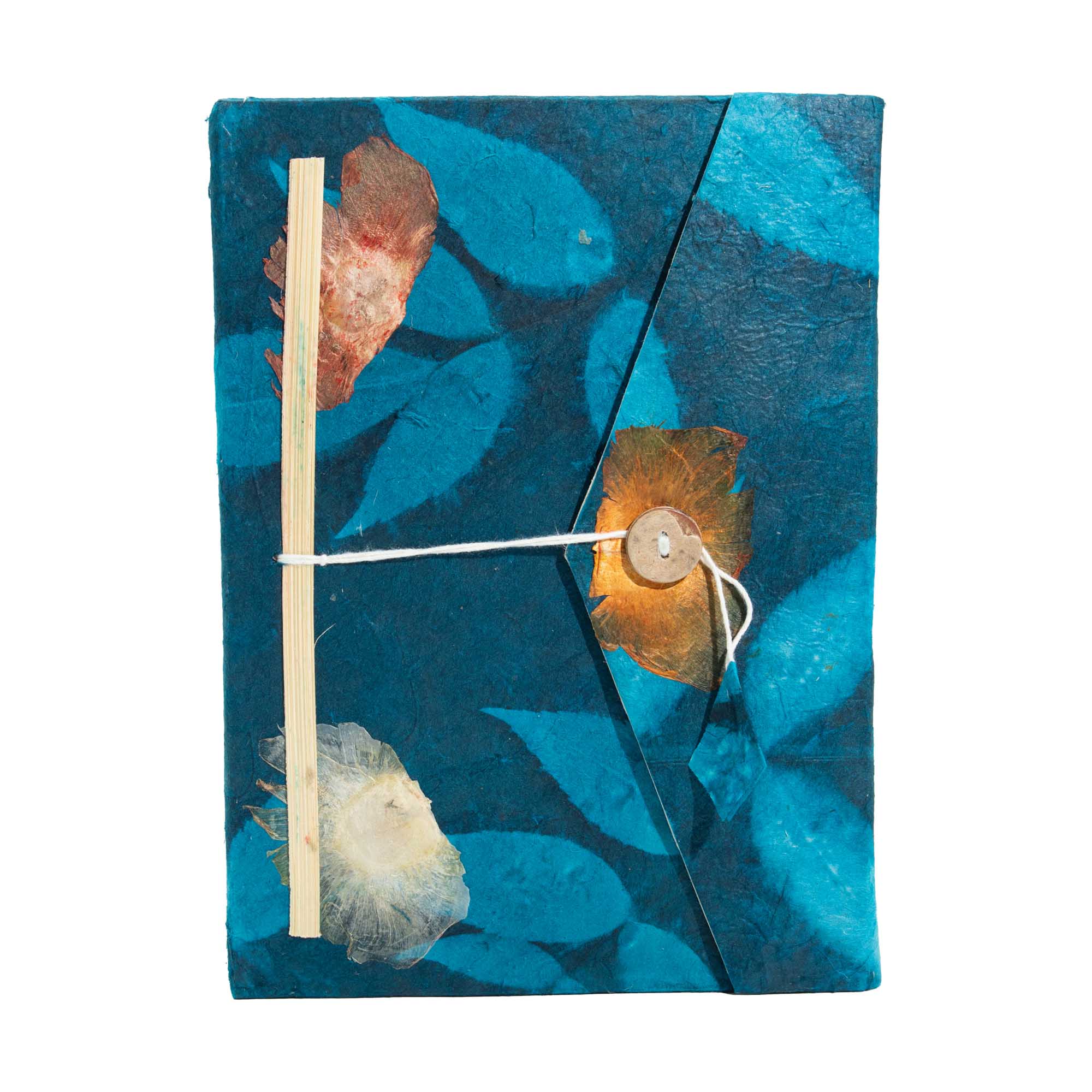 Půlnoční modrá edice dodává řadě Lokta Bold Floral hloubku a kontrast. Syté modré tóny vrstvené s botanickými detaily dodávají tomuto zápisníku chladnější a modernější vzhled, díky čemuž je obzvláště atraktivní pro designové obchody, kreativní prostory a moderní kancelářské pulty. Každý zápisník, ručně vyrobený v Nepálu z tradičního papíru Lokta, se vyznačuje přirozenou texturou a jemnými variacemi, které zdůrazňují jeho ručně vyrobený charakter.