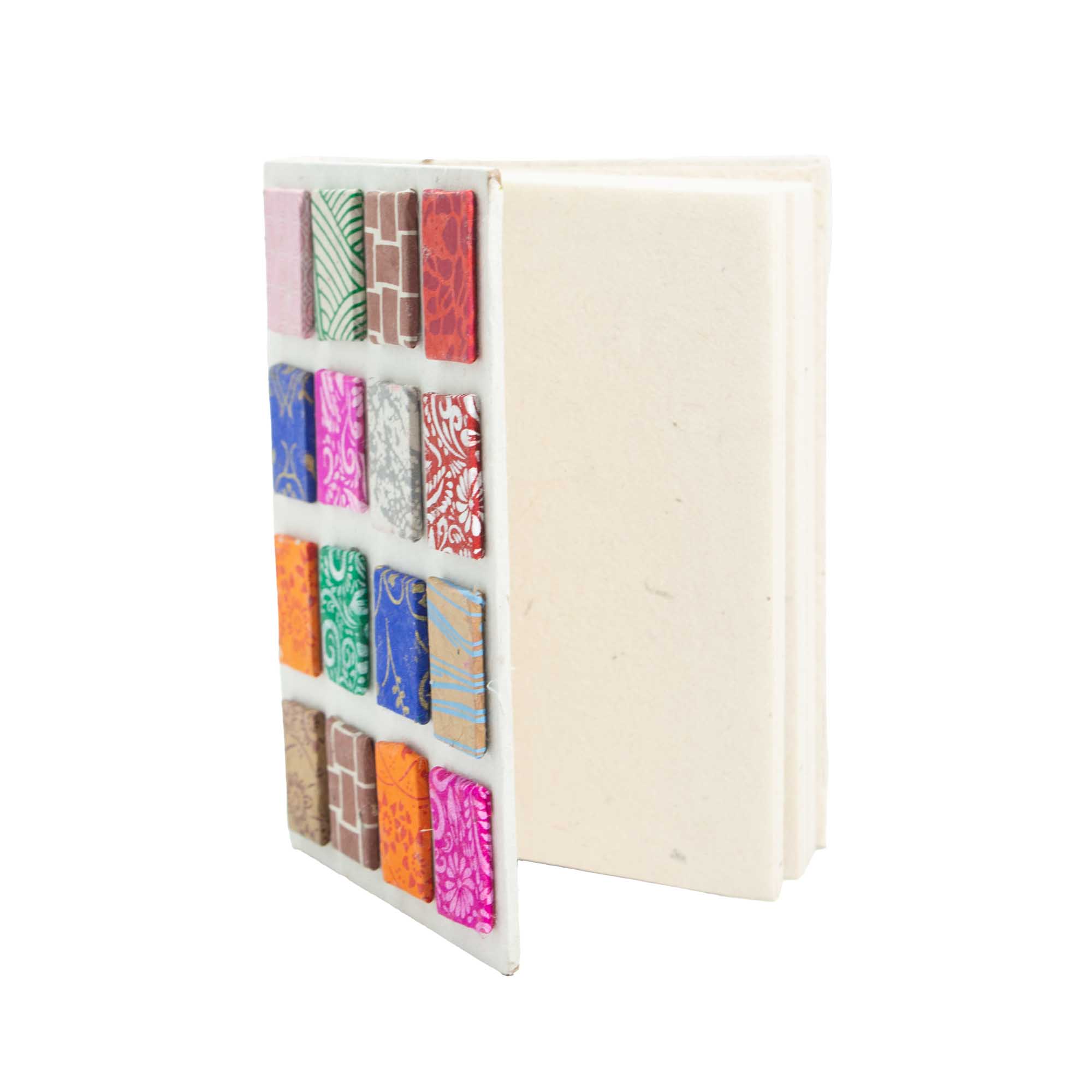 Tato přírodní edice zápisníku Mini Tiles odhaluje design a zároveň zachovává detaily. Jednotlivé vzorované panely, umístěné na podložce z papíru Lokta, působí měkčeji a texturovaněji, což umožňuje barvám jemněji ležet, spíše než dominovat.