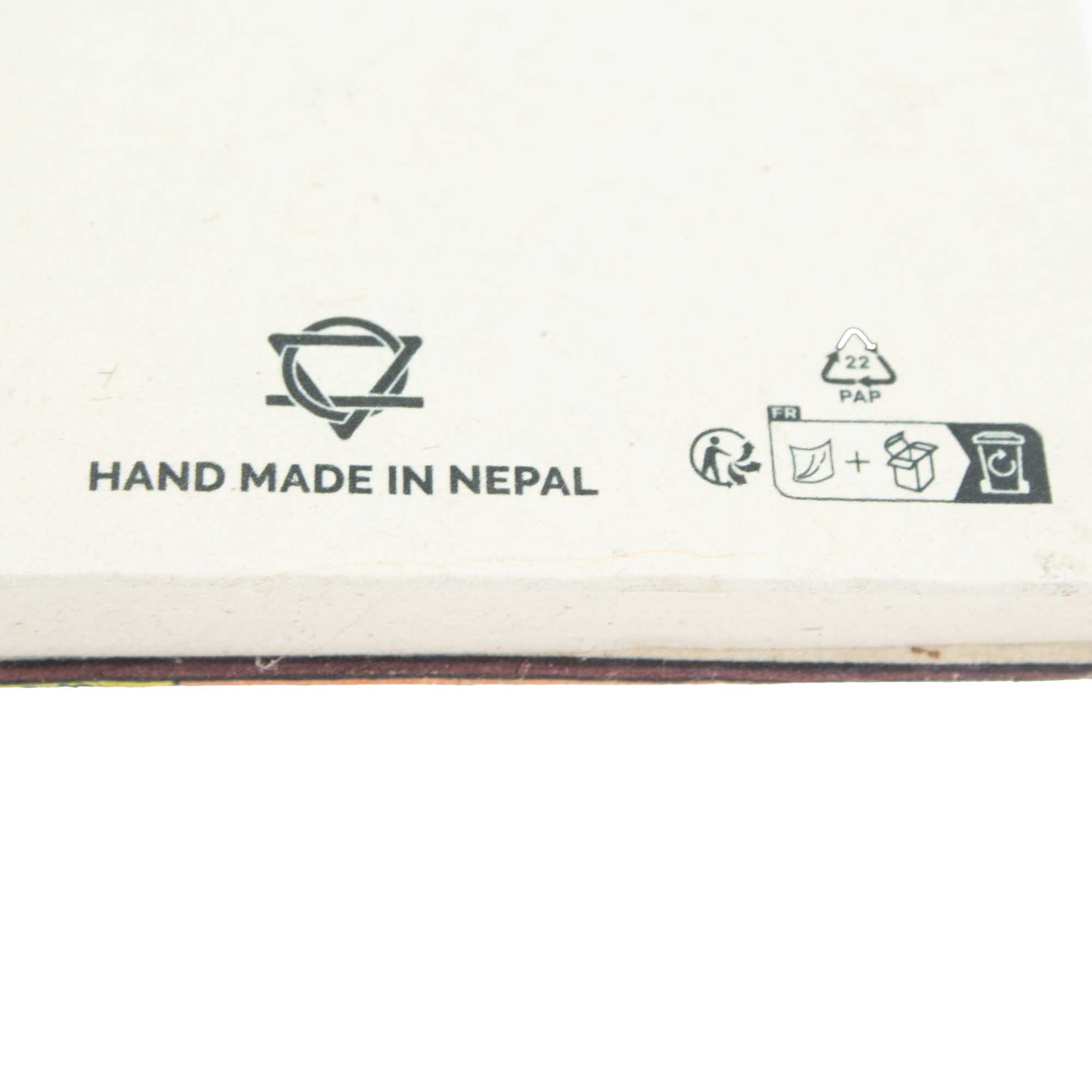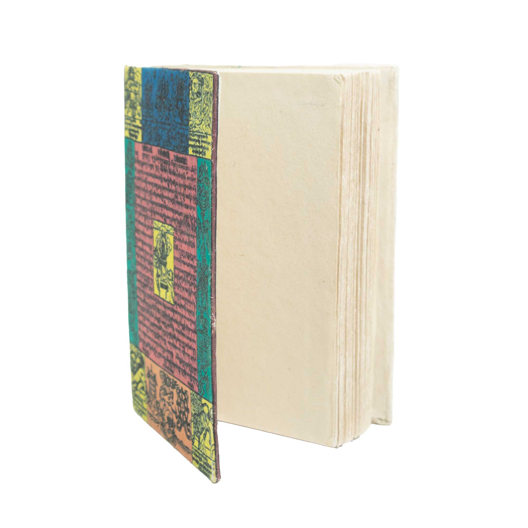 Tento zápisník Lokta, inspirovaný tradičními himálajskými modlitebními vlaječkami, nese symbolické motivy a detaily ve stylu písma, které mu dodávají silnou kulturní identitu. Vrstvené panely a kontrastní barvy vytvářejí rámovaný efekt, díky čemuž působí obálka spíše strukturovaně a účelně než dekorativně.