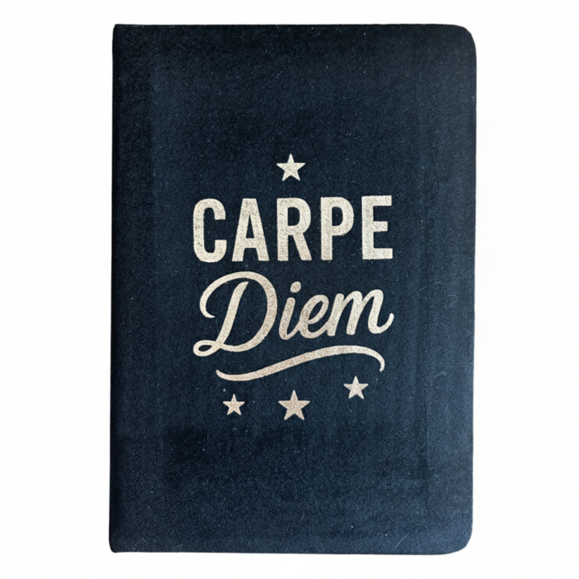 Dodá vaší nabídce papírnictví smysl a styl s elegantním sametovým zápisníkem Carpe Diem v elegantní černé barvě. Měkký sametový obal s vyraženým inspirativním vzkazem Carpe Diem z něj činí vynikající volbu pro zákazníky, kteří oceňují design i smysl.