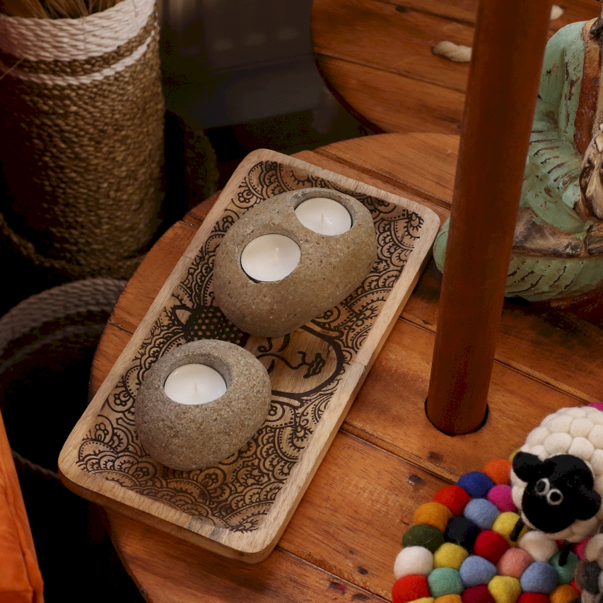 Dopřejte svému sortimentu originální nádech přírody s těmito ručně vyráběnými svícny Riverstone z Indonésie.