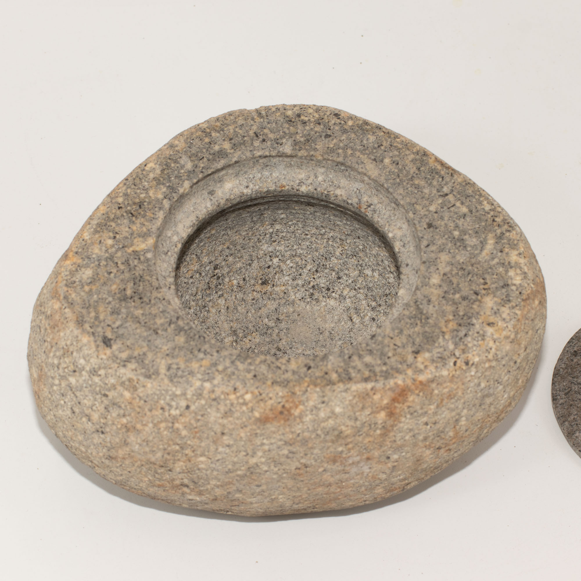Tato velká uzemňující nádoba je vyříznuta z masivního říčního kamene a zachovává si jeho přirozenou váhu, texturu i organický tvar. Vnitřek je hladký, zatímco vnější povrch zůstává syrový, díky čemuž působí příjemně v ruce a na každém povrchu přináší klidný pocit ukotvení.