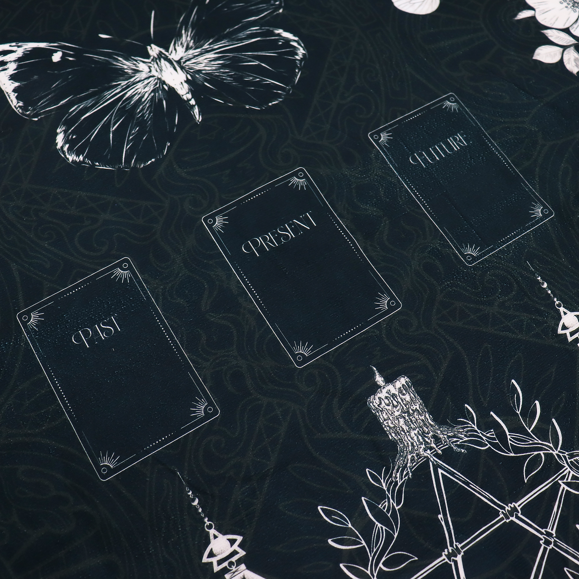 Tato utěrka promění jakékoli rozložení karet v zážitek prodchnutý čarodějnickou tradicí, ideální pro dodání charakteru a hloubky vašim metafyzickým zásobám. Vyrobena z odolného polyesteru a o rozměrech 75 x 75 centimetrů je praktická pro použití i vystavení.